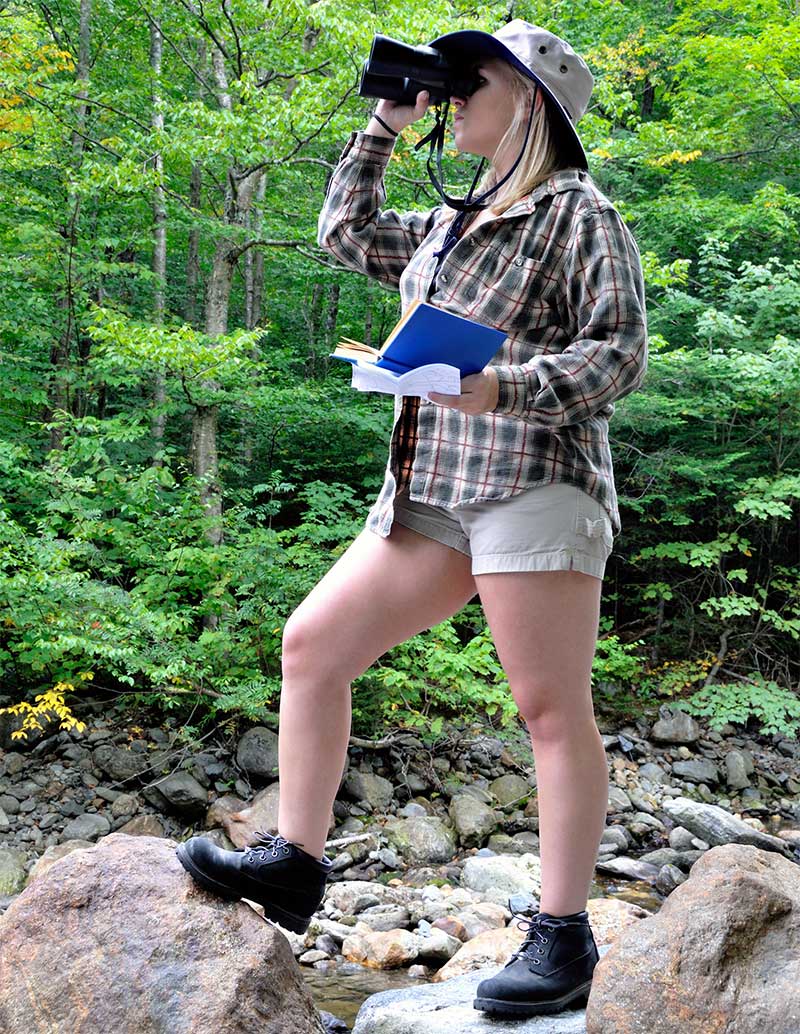 Practice using binoculars on stationary objects so you’re quick at getting them on different-sized things. Keep your eyes on the object—don’t look at your binoculars as you pull them up. This will make it easier when you’re trying to see a tiny, distant bird.